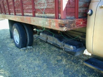 HP 115 @ 3400 RPM Straight 6 cylinder engine runs good. Needs brakes. Dual rear axle, air operated.